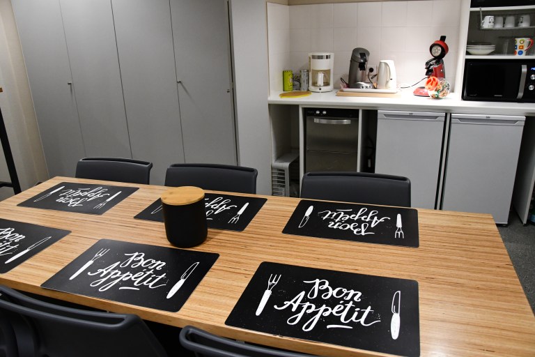 collaboration, avec salles de réunion et pause confort.